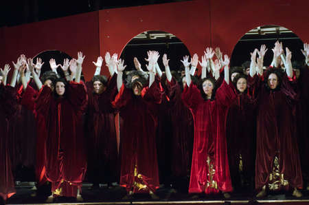 DNEPROPETROVSK, UKRAINE - NOVEMBER 27: Members of the Dnepropetrovsk State Opera and Ballet Theatre perform Carmina Burana on November 27, 2012 in Dnepropetrovsk, Ukraine
