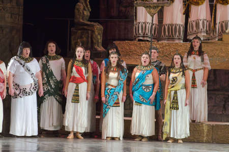 DNIPRO, UKRAINE - NOVEMBER 26, 2016: Aida opera performed by members of the Dnipro Opera and Ballet Theatre.