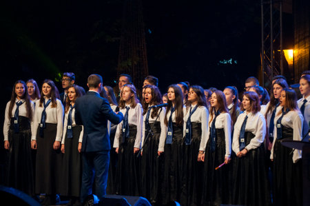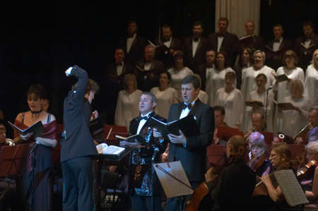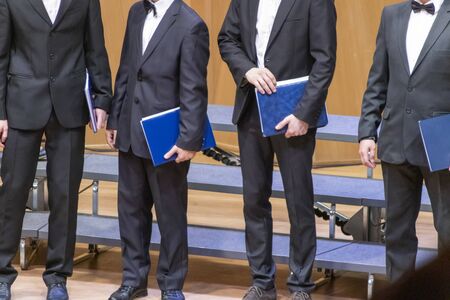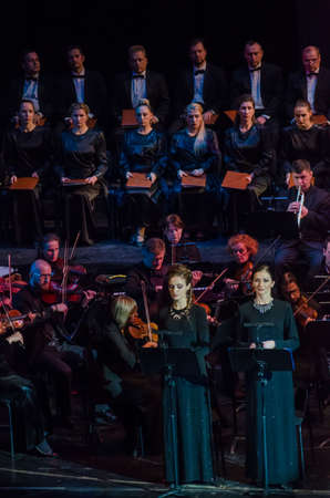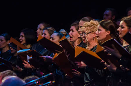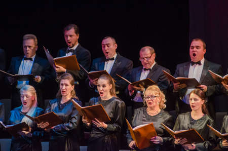 DNIPROPETROVSK, UKRAINE - APRIL 26, 2016: Members of the Choir of the State Opera and Ballet Theatre perform Mozart's REQUIEM.