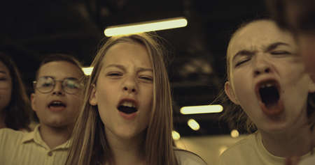 A crowd of screaming children. This could be due to excitement, fear, or any other strong emotion. AI Generative