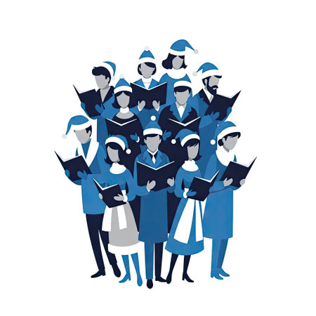 Harmonious Retro Christmas Caroler Group Clip Art Stylized Silhouette Festive