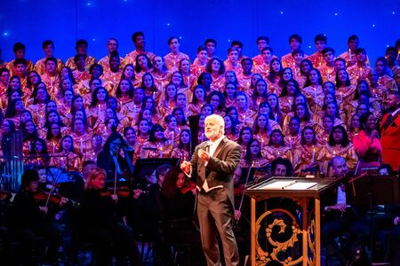 Orlando, Florida. December 03, 2019.. Conductor, orchestra and chorus thanking the public in Candlelight Narrators at Epcot 2