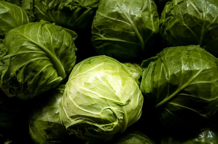 Vegetables, wholesome food, vegetarianism, organic foods. Fresh Cabbage. A head of green cabbage