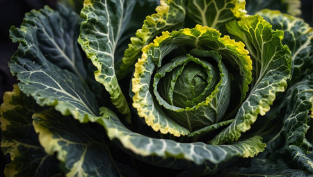 Close Up Of Fresh Savoy Cabbage Vibrant Green Textured Leaves In A Detailed Food Study