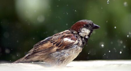 a small sparrow which takes a shower
