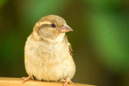 sparrow sitting on a handrail close up