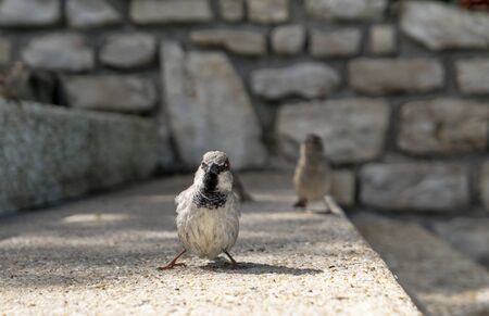 Cheeky sparrow looks directly into the camera and wants food