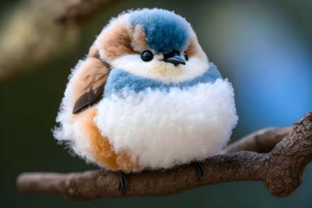An AI generated illustration of a fluffy colorful bird perched on a tree branch in a natural outdoor setting
