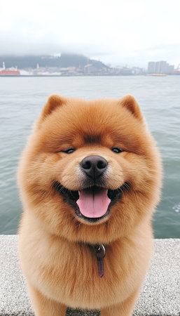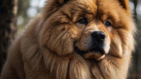 Majestic Chow Chow Dog in Vivid Outdoor Portrait with Fluffy Fur and Expressive Face AI Generative