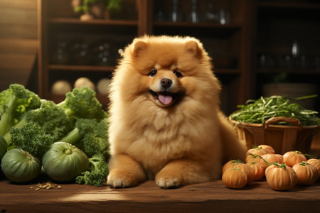 A charming fluffy dog sits happily on wooden steps, exuding warmth and joy. This adorable puppy is a delightful companion that brings a sense of comfort in a natural setting.