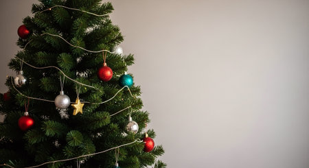 A festive Christmas tree adorned with colorful ornaments and soft glowing lights