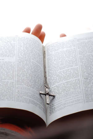 Christian cross necklace on Holy Bible book, Jesus religion concept as good friday or easter festival