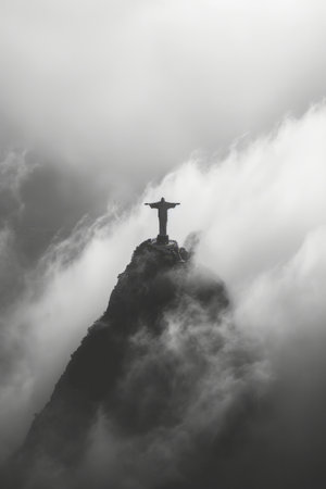 Silhouette of Christ the Redeemer. Black and white photos.