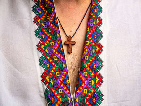 Pectoral Christian cross on the male chest.