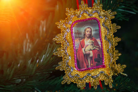 Icon of Jesus Christ in fir branches
