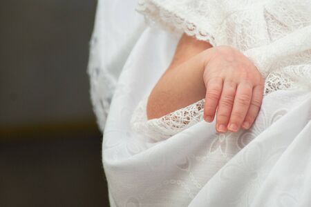 The sacrament of baptism. Newborn baby during christening