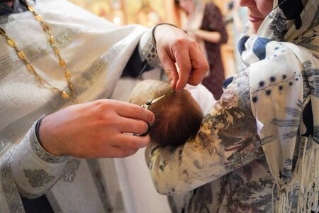 Baptism of the Child.Cut off hair with orthodox baptism