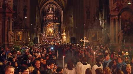 VIENNA, AUSTRIA - DECEMBER, 24 Christmas mass in Saint Stephens Cathedral. Popular touristic destination of the city