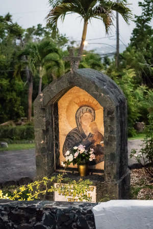 A Catholic church monument on the grounds of the parish in St Thomas of the US Virgin Islands.