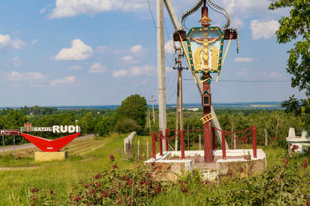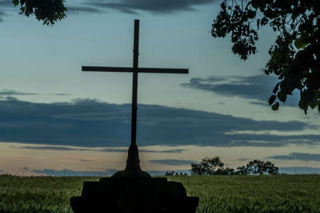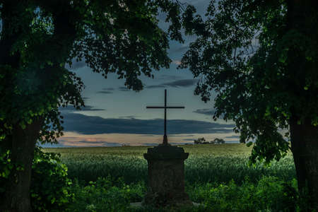 Crucifixion of Jesus Christ in the field of green grass. landscape with beautiful and green nature in the Republic of Moldova.