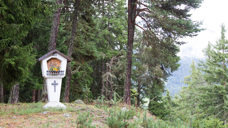 A memorial place of the patron saint on a footpath in the forest. Bavaria, Germany
