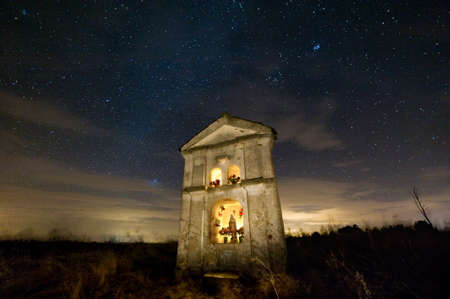 Old lonely chapel in northern Poland. Photographed on a starry night.