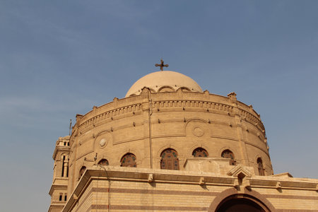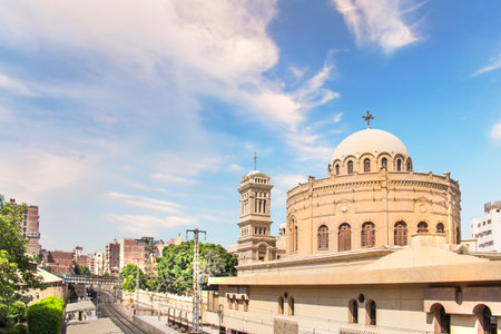CAIRO, EGYPT - DECEMBER 23, 2017: The Coptic district boasts beautiful Saint George Church, built in byzantine style with high bell tower, on December 23 in Cairo