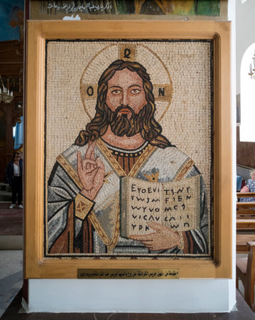 CAIRO, EGYPT - JANUARY 28, 2019: Mosaic at the Hanging Church in Cairo, Egypt