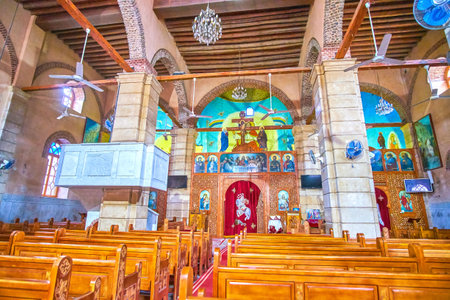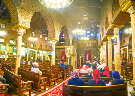CAIRO, EGYPT - DECEMBER 23, 2017:The interior of Great Martyr St George Church in Coptic district of Cairo, on December 23 in Cairo.