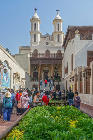 Cairo, Egypt - April 13, 2021 - the famous Coptic Hanging Church (St. Virgin Mary's) in Coptic Cairo