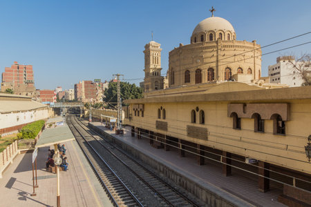 CAIRO, EGYPT - JANUARY 28, 2019: Mar Girgis metro station with St. George's church in Cairo, Egypt