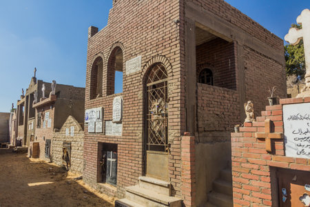 CAIRO, EGYPT - JANUARY 28, 2019: Tombs in the coptic cemetery in Cairo, Egypt