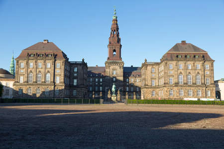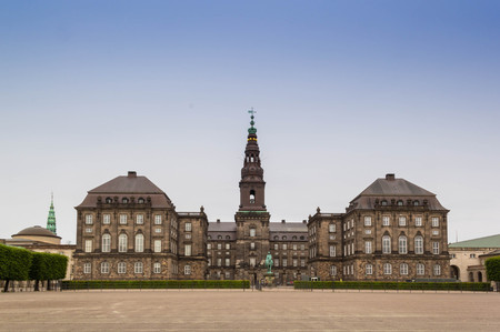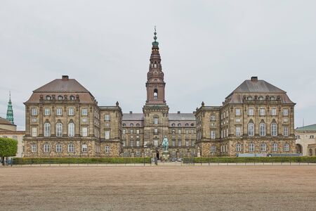 Front view of Christiansborg Palace, the Danish parliament, in Copenhagen, Denmark