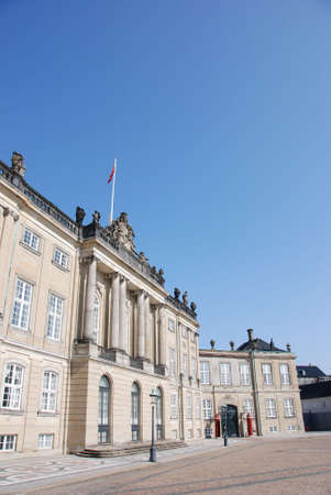 The Royal Couple\'s winter residence Amalienborg in Copenhagen, Denmark. The palace facade in the morning.