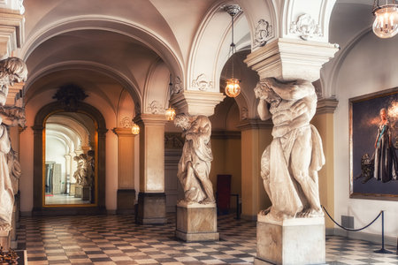 Saint-Petersburg, Russia - March 23, 2023: Russian Museum, Marble Palace front marble staircase, St Petersburg, Russia.