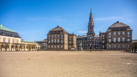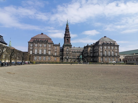 Christiansborg Palace in Copenhagen, Denmark. Great building of the Danish Royals under a blue sky on a sunny day