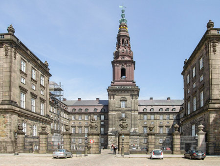 Copenhagen, Denmark - August 11, 2016: Christiansborg Palace in Copenhagen. It´s the seat of the Danish Parliament, the Danish Prime Minister's Office and the Supreme Court of Denmark