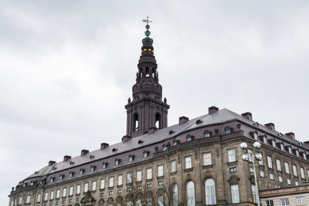 Copenhagen, upward view of the Chrisrianborg palace in a cloudy day