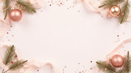 Modern Christmas background with clean layout and pine decor.