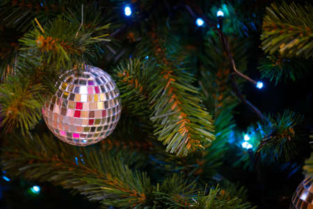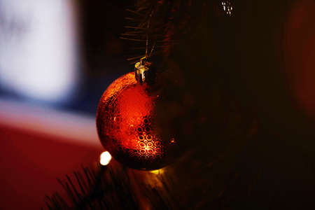 bright ball on the Christmas tree. The concept of Christmas and New Year.