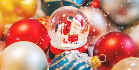 Beautiful christmas background with decor. Selective focus. Holiday.