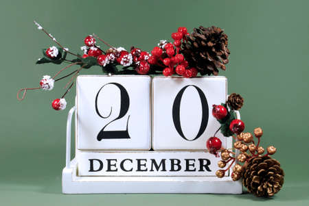Save the Date calendar with Winter theme colors, fruit and flowers, for birthdays, special occasions, holidays, weddings, website events, or Christmas Advent calendar days, for December 20.
