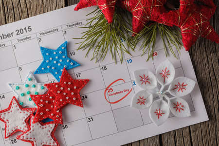 Ready to coming christmas. Calendar with marked date of christmas day