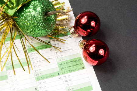 Calendar and decorations for Christmas