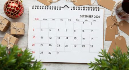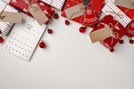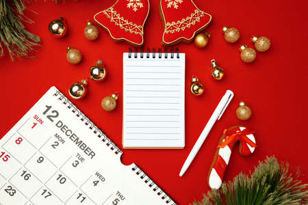 Winter holidays background, calendar concept, view from above