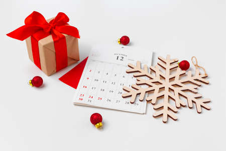 Christmas background with Christmas decoration and vintage calendar