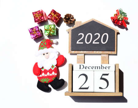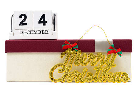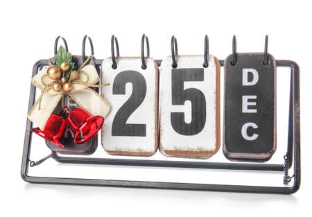 Calendar with date of Christmas on white background