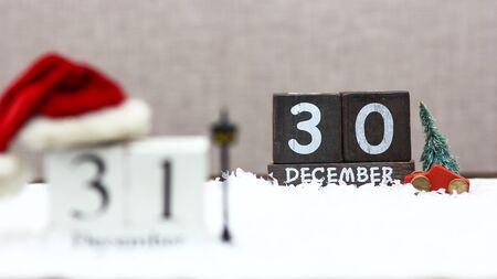 wooden christmas date with holiday background