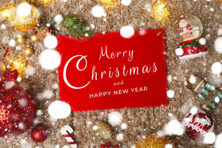Christmas decoration, Christmas and New Year holidays background, winter season with Christmas ornaments and blurred lights