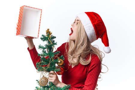 woman wearing santa costume gift decoration holiday